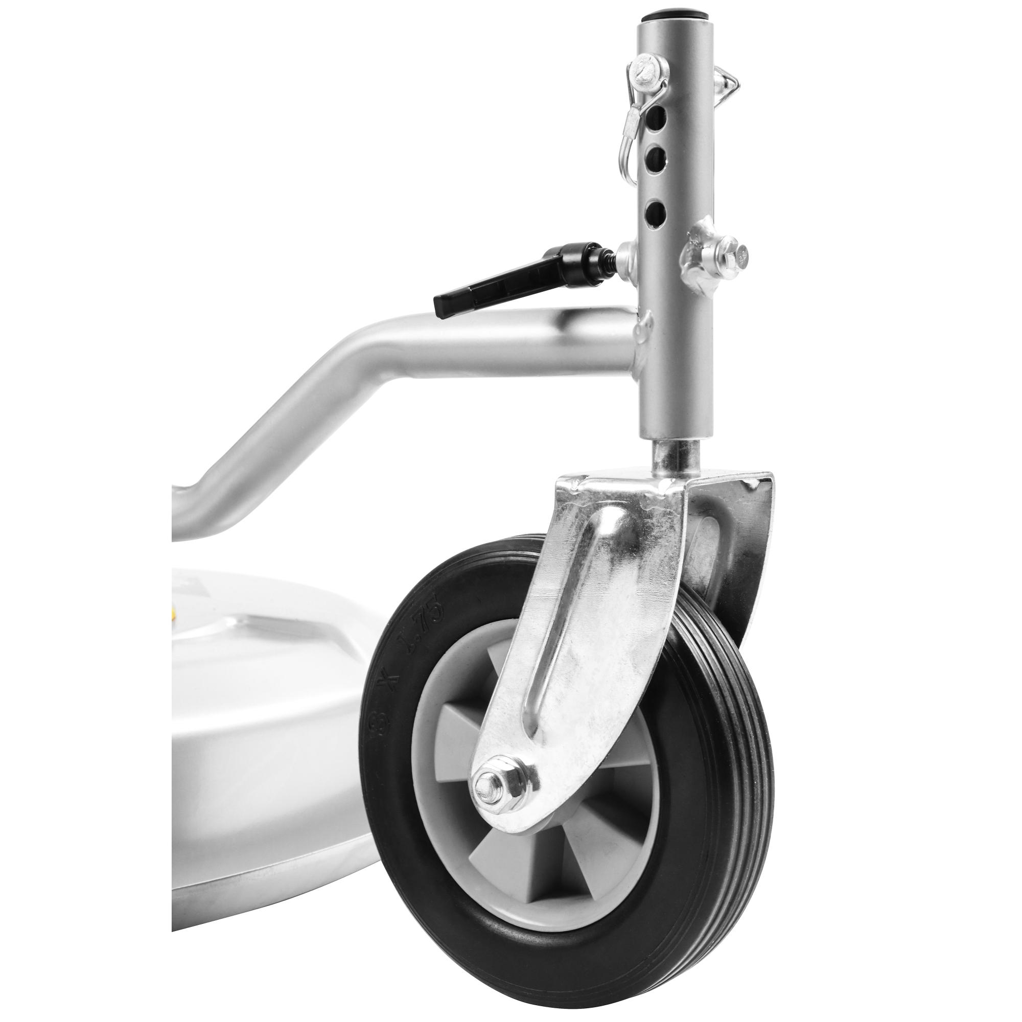 ⊗ גלגלים אחוריים גדולים בקוטר 300 מ"מ, וגלגל קדמי מסתובב ומתכוונן ל- 4 מצבים בהזזת בורג, או שאפשר לנעול אותו לעבודה קבועה בקו ישר.